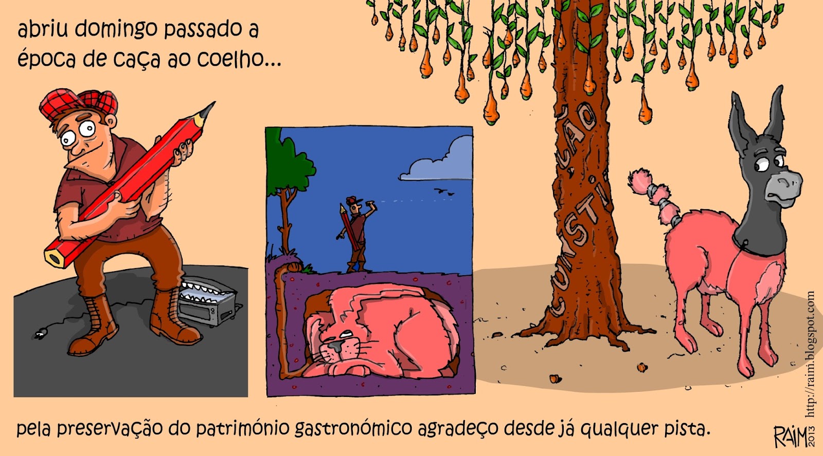 Por outro lado, é uma boa poupança fazer uma boa caçada ao Coelho. É um bicho que faz muito estrago nas agriculturas, nas tais couves e batatinhas. Além de que se reproduz a uma velocidade impressionante, a tal velocidade que a economia deveria ter na troca de moeda por bens e serviços.